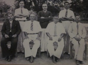 Seated in this photo from left to right are: Mr Ram Jiwan Sharma (Secretary), Mr Bechan (President), Mr Raghunandan Singh (Vice-President), Mr Sarju Prasad (Manager). Standing from left to right are the Head-Teacher – Mr Ram Charitra Sharma, Mr Shri Ram (Treasurer) and Mr Ram Prasad (Executive). Absent from this photo are the following members of the school committee – Mr Budh Ram, Mr Shri Krishan, Mr Dhani, Mr Jhinnu, Mr Karan Singh, and Mr Dur Swami.