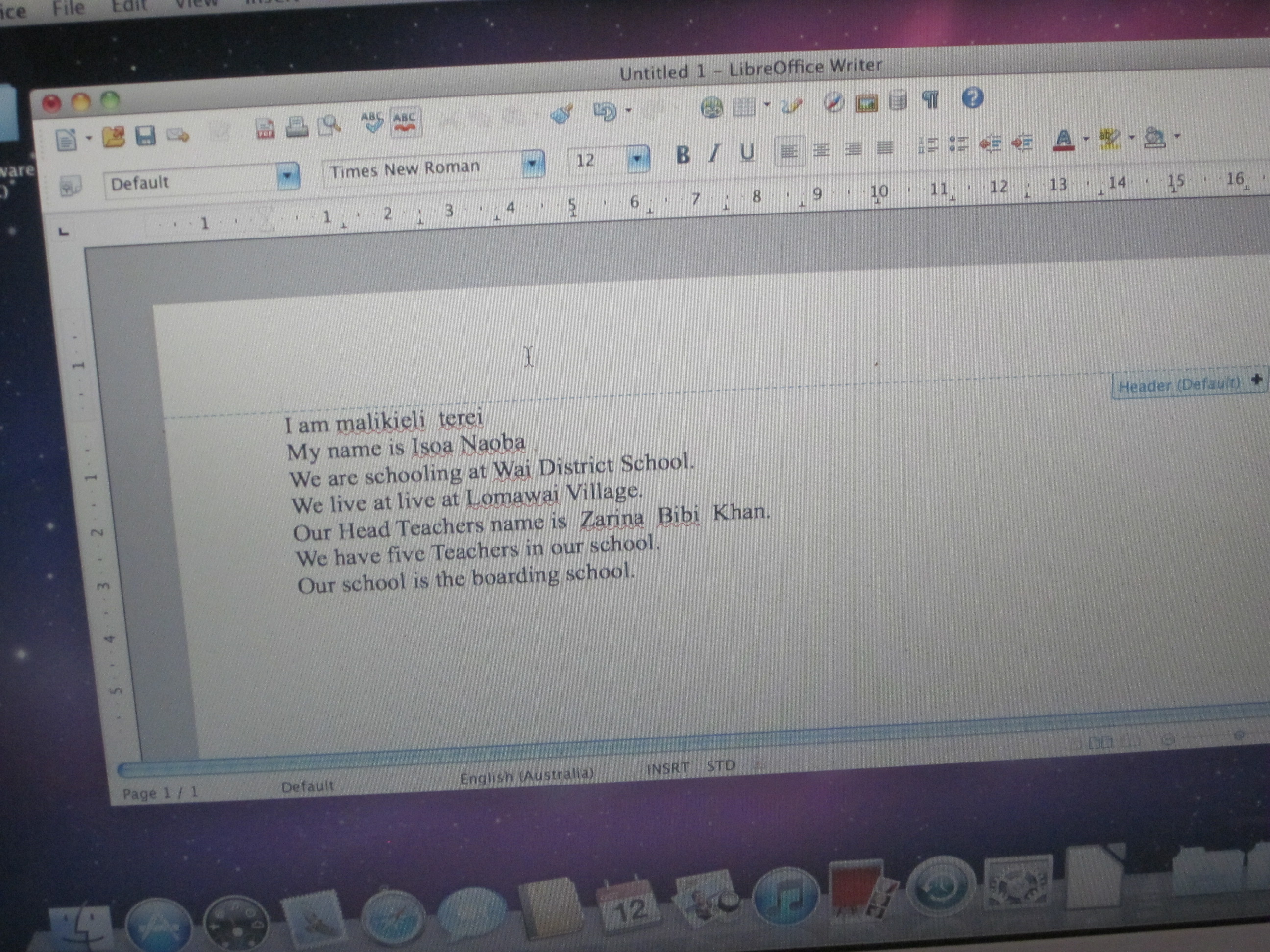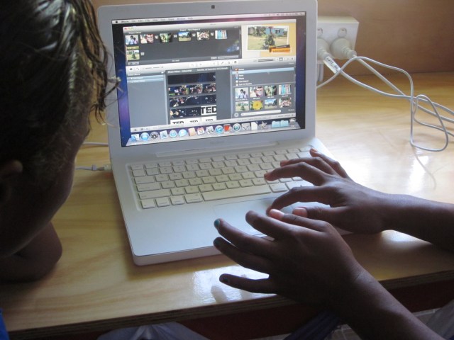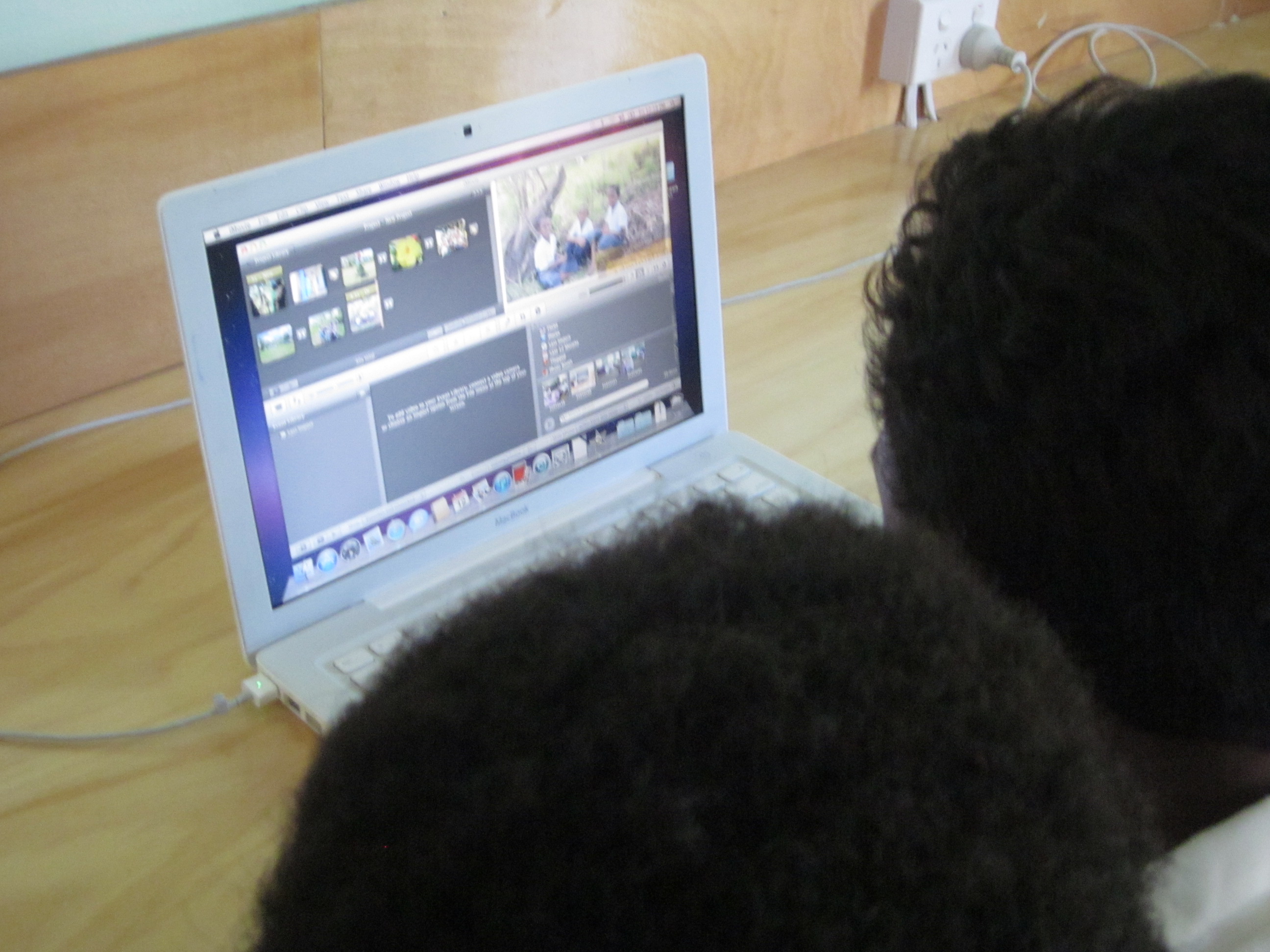 We also asked a couple of students to capture some images of the school. These images were downloaded to a file. Photos from this file were used by the students to create a movie (using imovie) of their school. We went through the process of selecting photos, embedding text and sound. By the time we finished in the afternoon – they were well on their way to creating an movie. From no experience with computers to this stage was a remarkable achievement – I think on the part of the students.