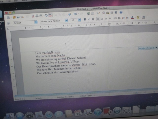Perhaps the other highlight of the day was that we worked with the Year 7 and 8 students. With the exception of one student – none of the others had used a computer before. We started them with some basic familiarisation of  the keyboard.