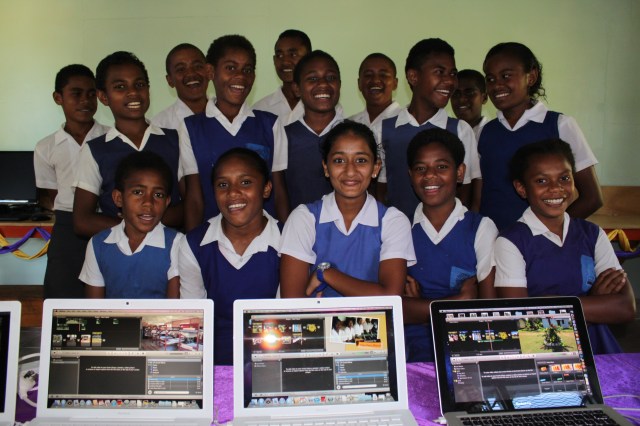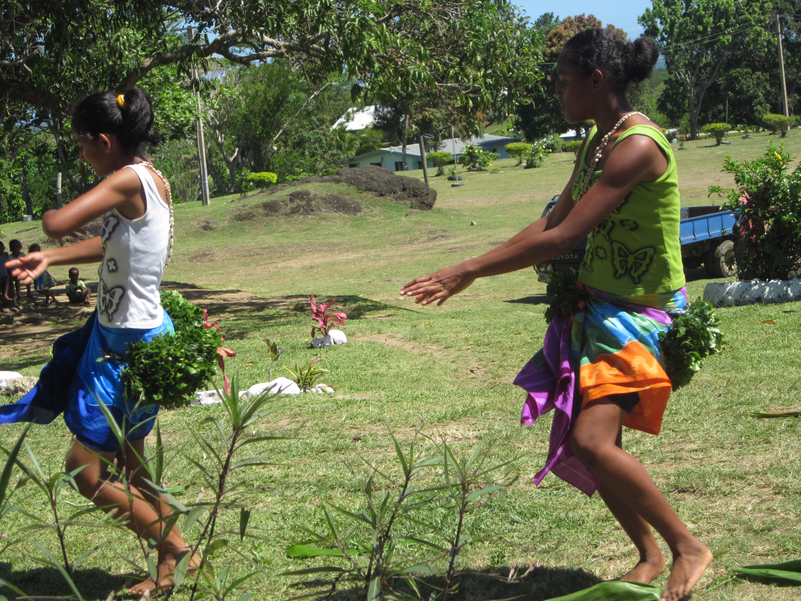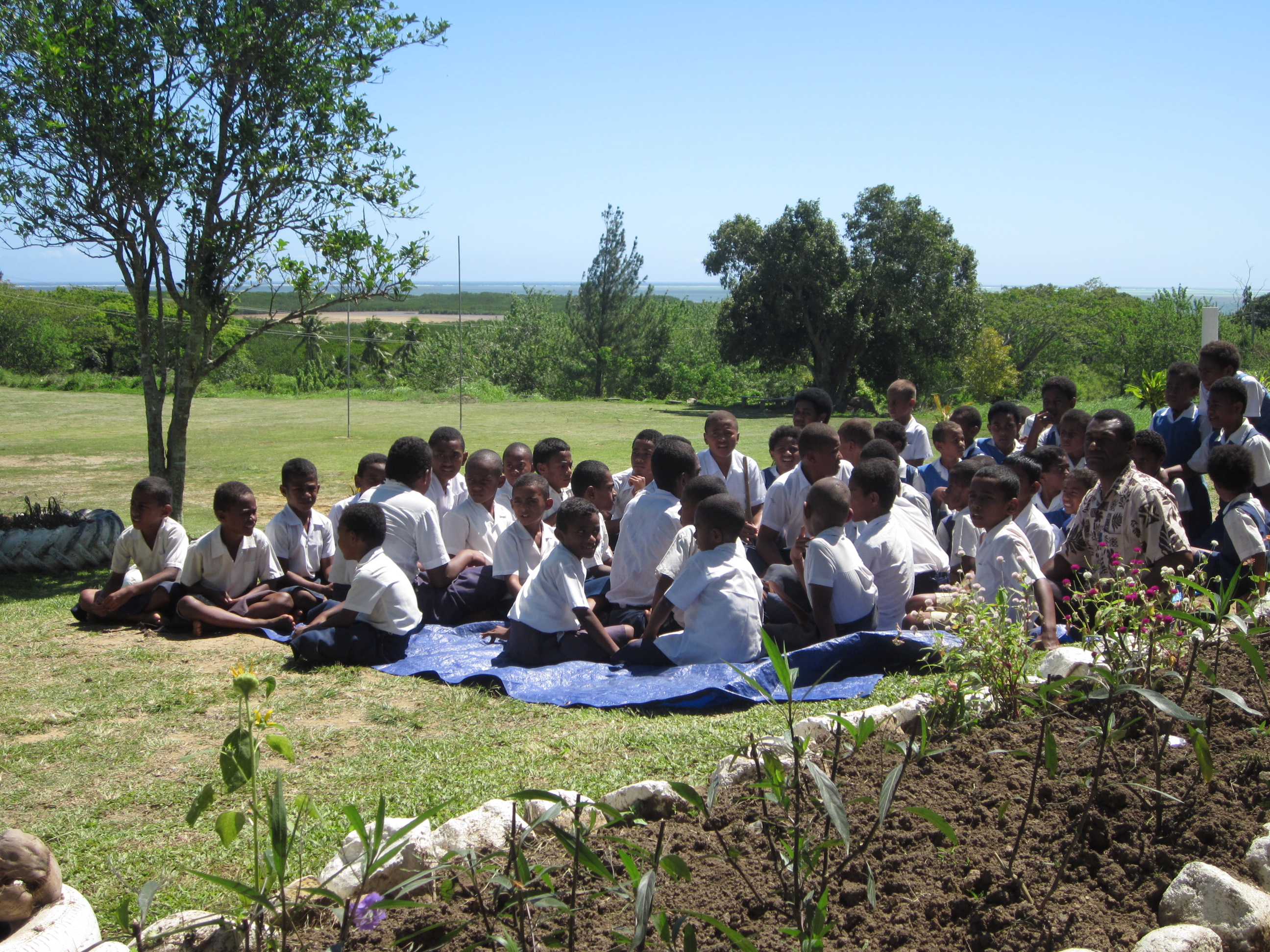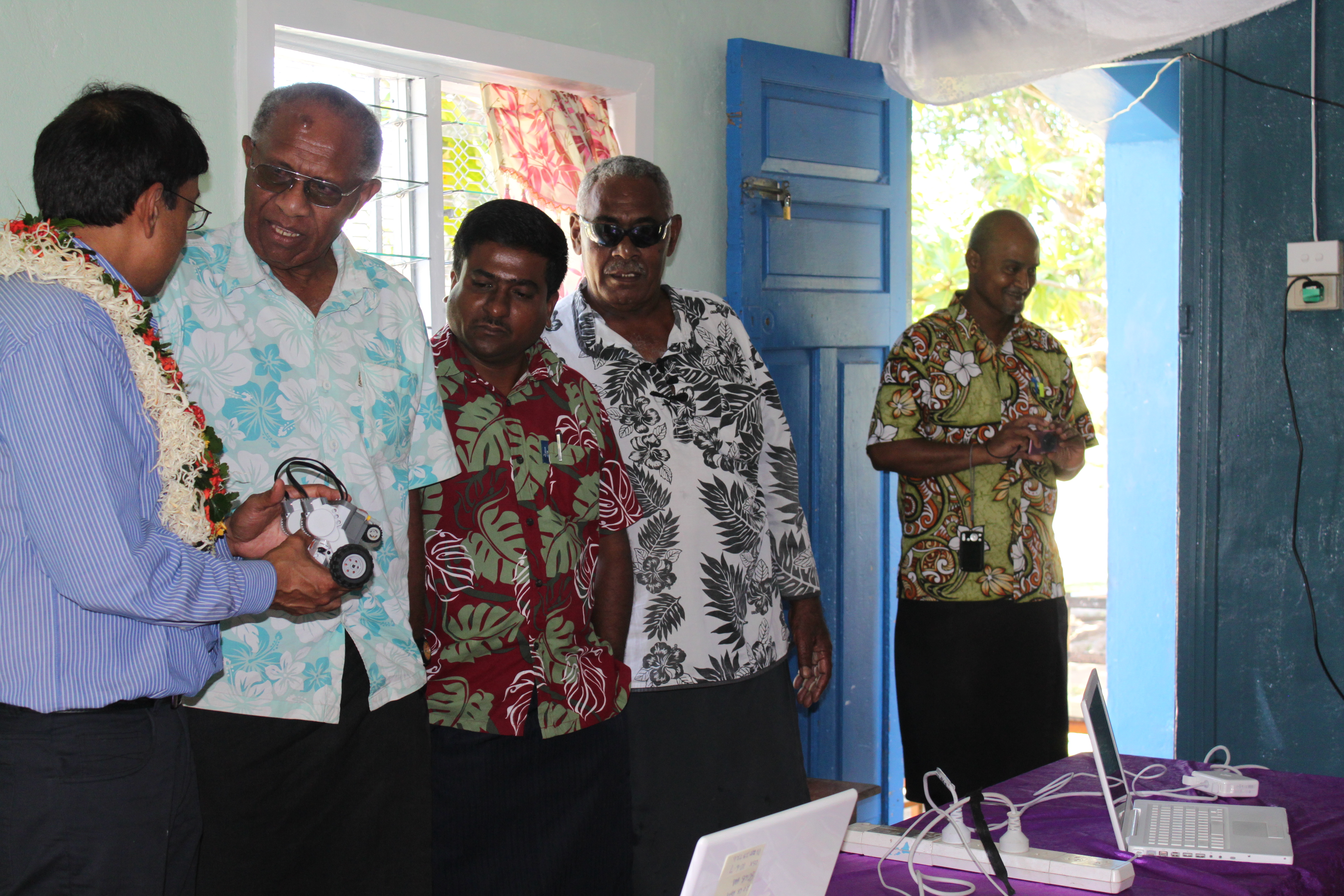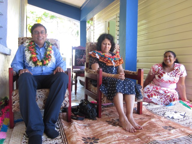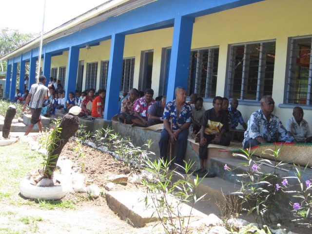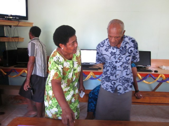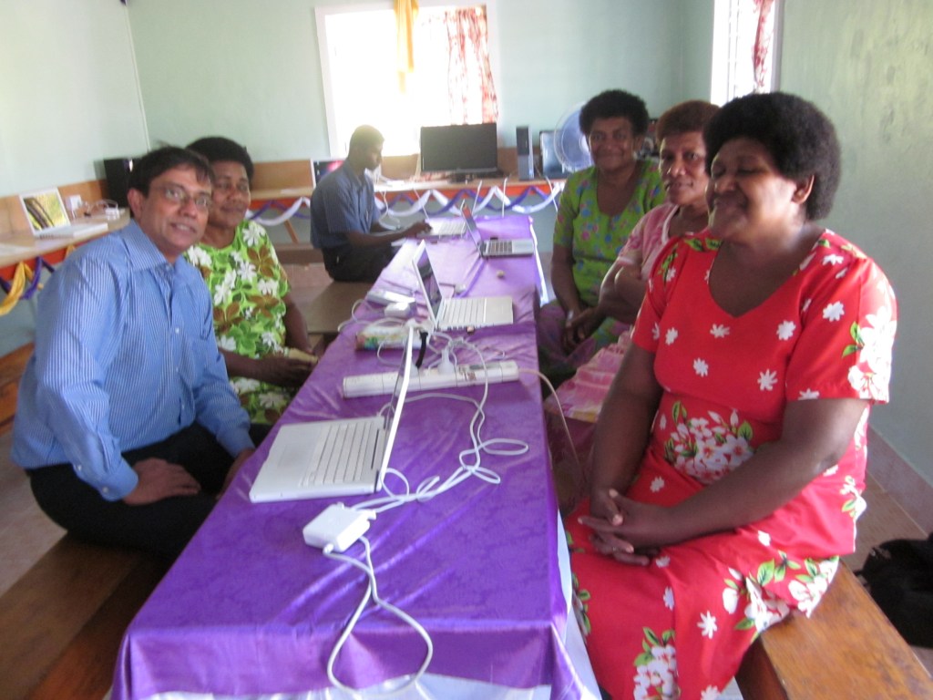 It was a big day for this school. By about mid morning – parents, grandparents and friends started to arrive. They took their places in the school balcony where the formal ceremony was to occur. It was a very humbling experience for us – the traditional Fijian ceremony of sevusevu meant so much to us. We set on two  chairs on special mats and tapa. In such ceremonies  kava is initially offered to the chief guests and it has a very special significance. The salusalu or garlands for the guest is made with a lot of skill and love. As part of the tradition we were given a lot of hand made gifts like – mats, tapa, oil and brooms made out of coconut leaves. We donated five Mac laptops to this school – thanks to the support of the QUT’s Faculty of Science and Engineering.