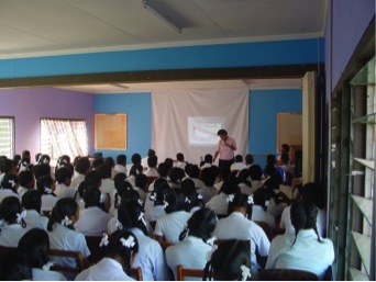 Prefects having a session with reps from Vodafone ATH and Fiji Council of Social Services prior to the arrival of the projector. As from Term 3, the Student Council have their meetings in the Ubuntu Lecture Theatre.