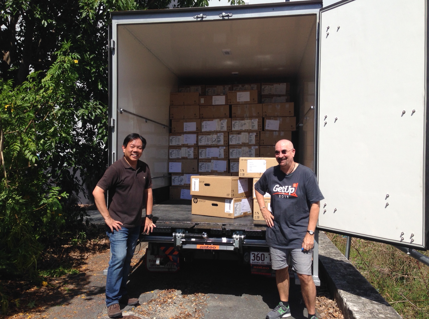 A significant part of our work entails loading, unloading, storing, and transporting the donated items. We are very grateful to the Queensland University of Technology  for not only donating most of the secondhand items but also assisting with storage. In addition we have been grateful to the support given to us by some high school students – Jehan Baguley, Afiq Nazrin, Alif Nazrin, Oliver Caddie, GB and Riccardo McMillan-Miceli, Nadia Baguley, Simon Rocco, and Billie Liu. They have helped us with a lot of the “heavy lifting” at various stages. Thanks very much team – your assistance is truly appreciated.