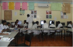 At the beginning of the year (2012), the school had 20 Pentium 3 and Pentium 4 desktop computers with CRT Monitors.  On average only 10 computers were operating. Maintenance costs were high and were borne by the school.  The computers’ were slow and as a consequence much of students time in the labs was counter productive. Despite this challenge students’ continued to work on their assigned tasks (e.g. lab activity, projects and research work in pairs and sometimes in groups) (see Fig 1 and Fig 2 )