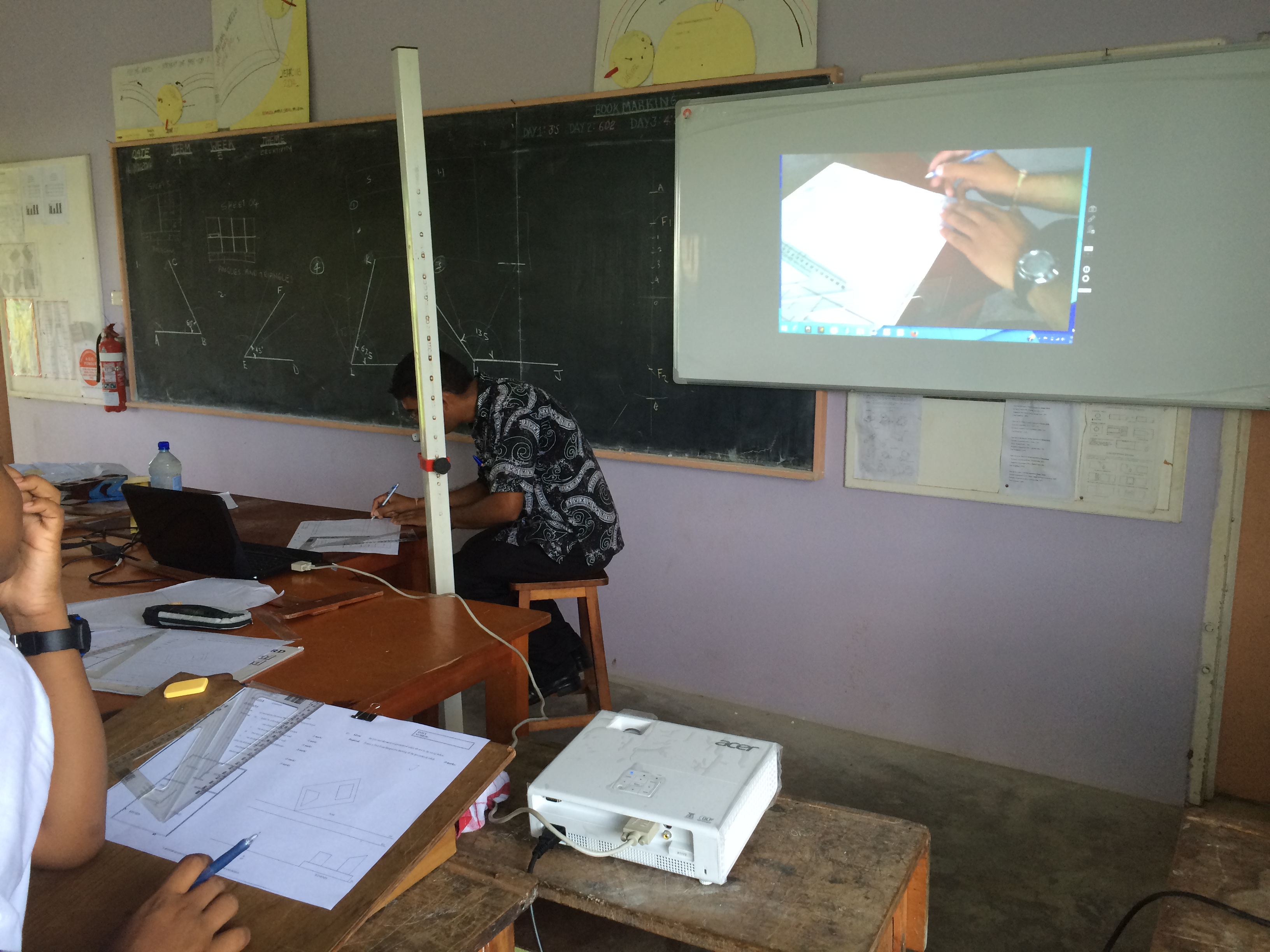 It was great to see that many staff were making the most of the opportunities that Segran was providing at the school. For example, in the picture below, the tech drawing teacher is using a webcam to project live footage of his worked example onto the whiteboard. The teacher is also using recording software on his laptop to make a video of his worked example, which he then was able to give to students on their USB’s, for them to take home and watch again. This is an excellent example of how when ICT is used effectively, it can enhance and extend the learning experiences for students.