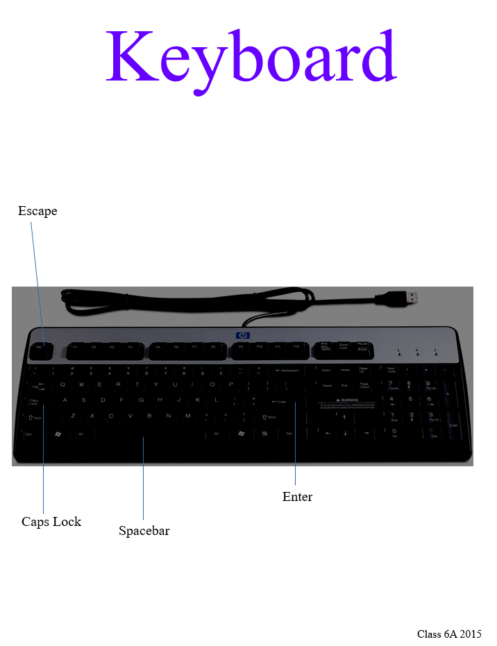 This example poster was created by class 6A. The students labelled the keys on the keyboard that they thought were most important.