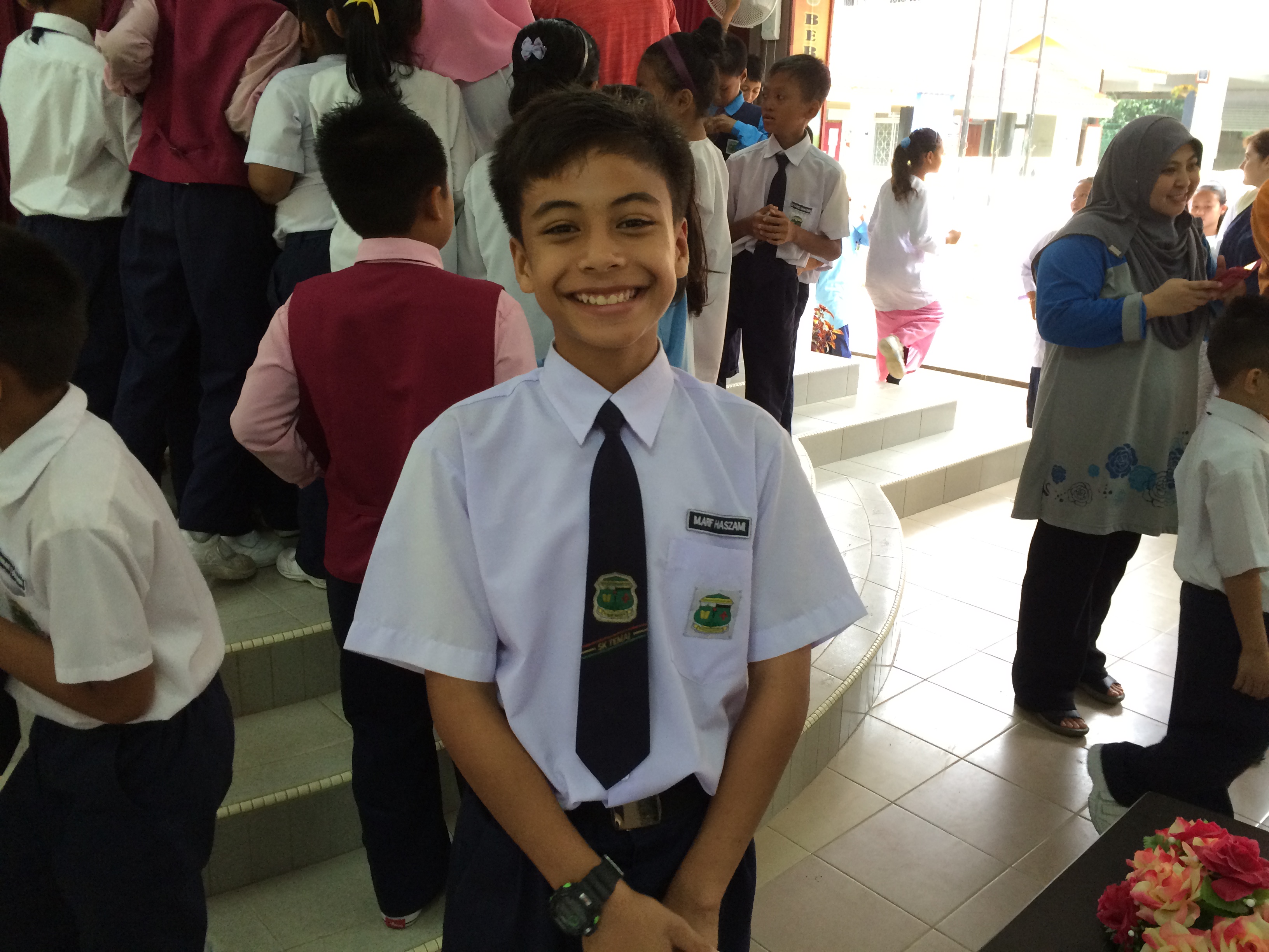 As our coach headed to the school, I reflected on a story that Siti shared with some of us the previous day. Sometime last year, Siti talked about the proposed QUT trip with her students at UPM. One of her students, Fadzil Noor Johar approached her and suggested Temai Primary School as a possible project site for QUT students. It was close to his home. His parents – Haji Johar Sulaiman and Hajjah Rozilah also lived here. Siti liked the idea. However, earlier this year parts of Pekan was flooded. Fadzil was crossing the flooded waters just outside his home. In a freak accident, Fadzil drowned. As expected his parents, family and friends were devastated by the loss. Fadzil was a young man with a very bright future. He always extended his hand to help others. So our project at Sekolah Kebangsaan Temai was dedicated to Fadzil.