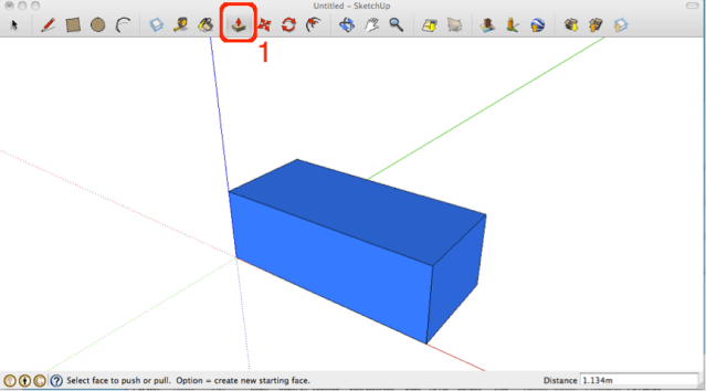 - This PUSH/PULL tool converts a 2D shape into a 3D shape. The diagram below shows a rectangle(2D) that was converted to a cuboid(3D). This one step conversion makes this tools very convenient to use. The tool is used to either push or pull on a 2D shape to convert it into 3D.