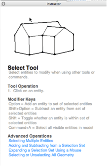The INSTRUCTOR window outlines how the tools in Google SketchUp work. It usually opens when a tool is selected. If this window is not open – you can open it from the drop-down menu in WINDOWS .