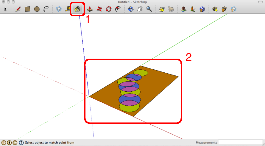 This PAINT BUCKET(1) tool is useful for painting surfaces to suit the needs of the sketch. It is simple to use – select the Paint Bucket Tool, choose the desired colour, then click the paint bucket on the desired section of sketch(2).